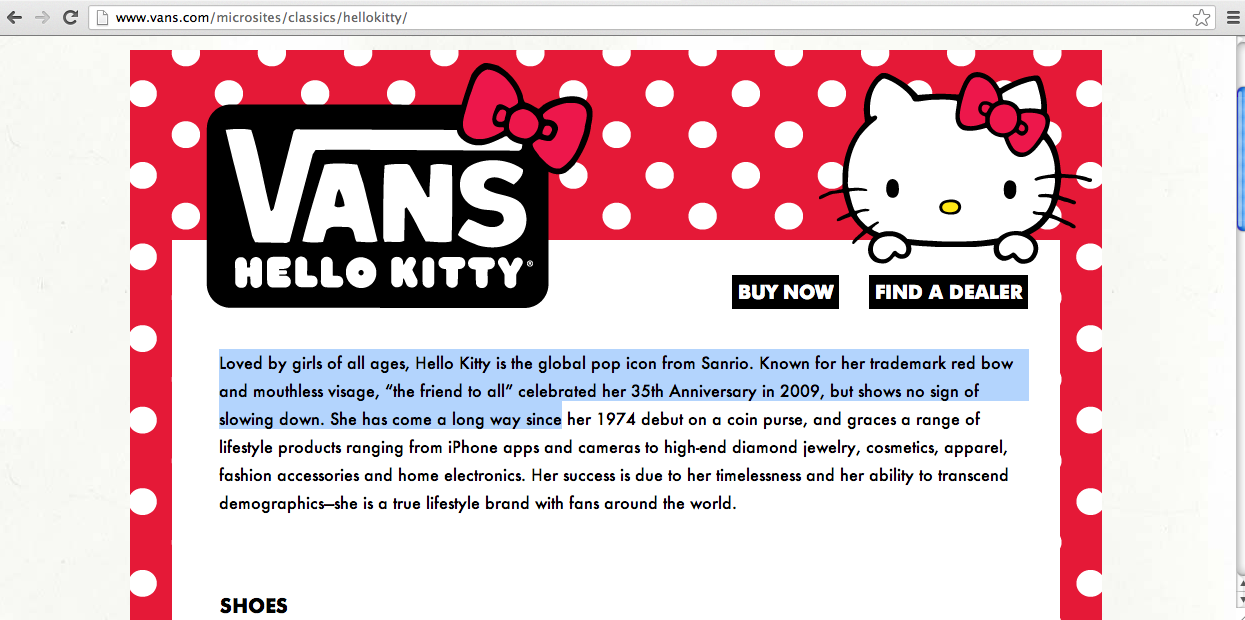 ตัวอย่างเช่น Vans ก็นำคิ้ตตี้มาทำลายรองเท้า